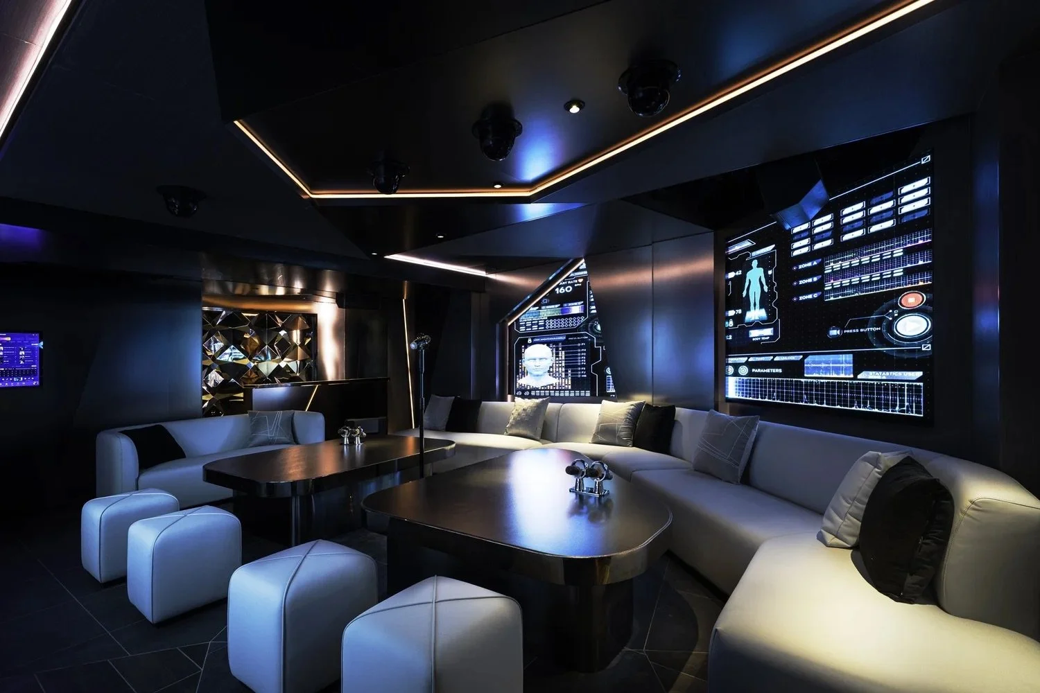 The heart of the fleet, Earth vibrates with life, energy, and music. Its reflective interiors pulse with rhythm, making it a perfect stage for bold voices and big groups. For a next-level experience, request a private DJ to spin between karaoke sets, keeping the planet alive with endless energy.
